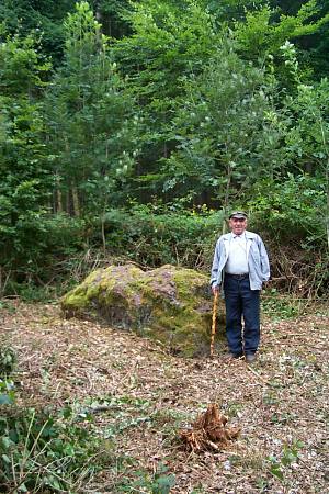 Stein von Farschweiler. Ein obeliskartiger Stein, wohl 3 Meter lang liegt nach Osten umgefallen an dem Waldgrenzgraben etwa 1.1 Kilometer nordwestlich von Farschweiler, nördlich vom Punkt 490,5. Die Gesteinsart, ein rotes Sandsteinkonglomerat scheint es zu sein, wurde mir als nicht ortsständig bezeichnet, es muss also von anderswo herangeholt sein.