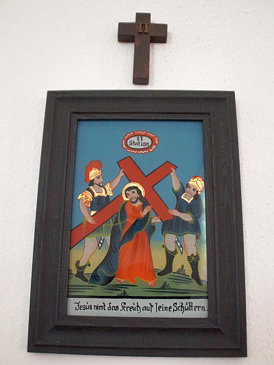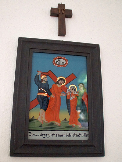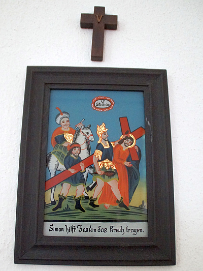 Der Kreuzweg in der Kapelle Sankt Cornelius, in Riveris, wurde von Frau Edel am 28.1.1941 gestiftet. Die Kosten beliefen sich auf 220 Reichsmark. Noch brauchbare Stationen des alten Kreuzweges wurden später den Bürgern geschenkt. [1]