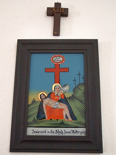 Der Kreuzweg in der Kapelle Sankt Cornelius, in Riveris, wurde von Frau Edel am 28.1.1941 gestiftet. Die Kosten beliefen sich auf 220 Reichsmark. Noch brauchbare Stationen des alten Kreuzweges wurden später den Bürgern geschenkt. [1]