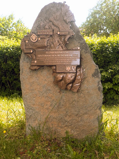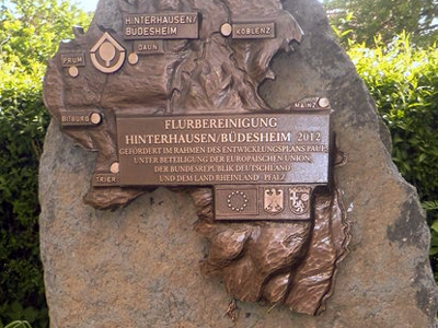 Der Gedenkstein des Flurbereinigungsverfahrens Hinterhausen/Büdesheim