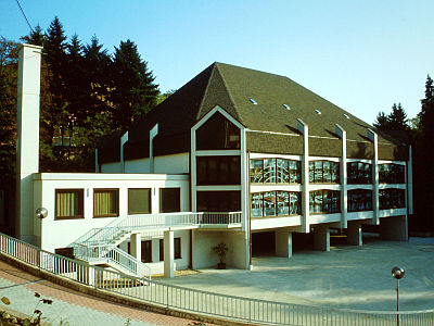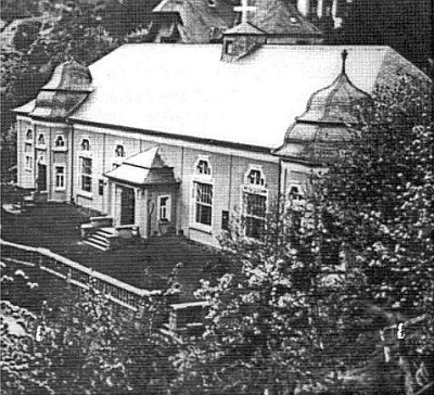 Das erste Foto zeigt die Kirche kurz nach ihrer Fertigstellung. Das zweite Bild zeigt den Vorgängerbau, früher auch als Cafe Busental bekannt. [1]