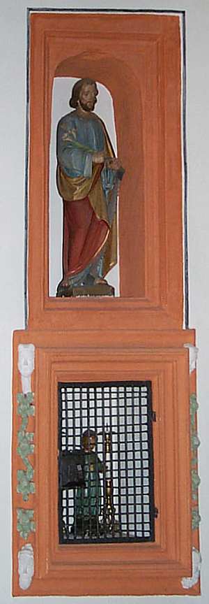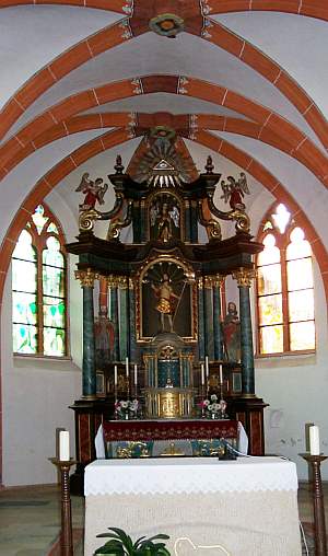 1909 von Ernst Brand aus Trier erbaut. Hochaltar von 1735. Im Chor Sakramentnische um 1500. [1]