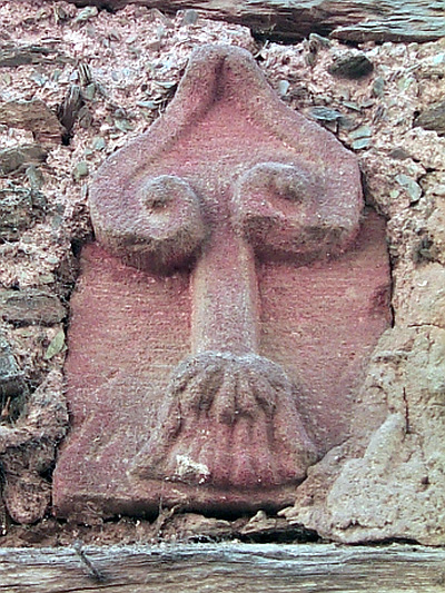 Über dem Türsturz ist ein kleiner Sandstein eingelassen, auf dem ein nach oben gerichteter Pfeil zu erkennen ist. Es handelt sich um eine der in Oberemmel gebräuchlichen Hauszeichen, die auch auf dem noch vorhandenen "Rosenkranz" vorkommen, der Loskette, die bei der Verteilung der einzelnen Schläge im Gehöferschaftswald eine wichtige Rolle spielt.