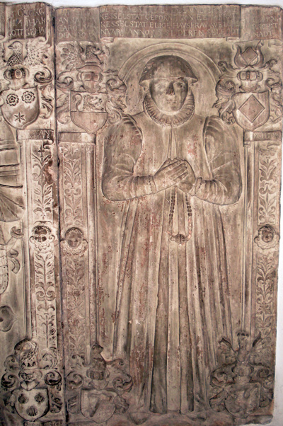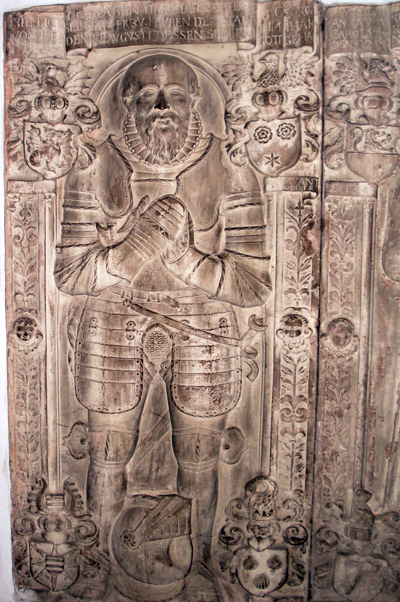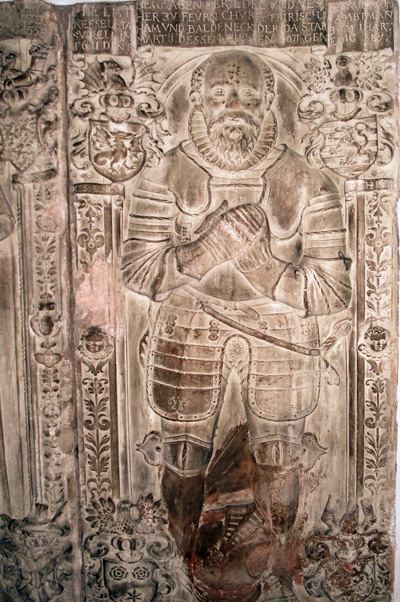 Rechts Grabmal Karl von Kesselstatt († 1611) [Bild 3] und der 1570 datierte Bildnisgrabstein der Maria Elise Engel von Kesselstatt, geb. von Enschringen († 1558) [Bild 4].
