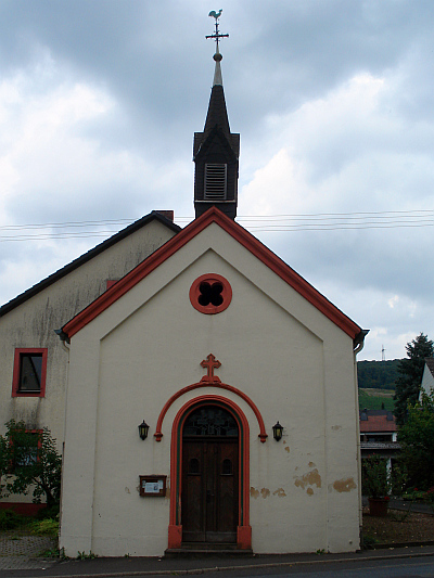Als Nachfolgerin einer von der Abtei Mettlach um 1700 an dieser Stelle erbauten Kapelle wurde sie 1876 errichtet und im Jahre 1889 geweiht. Es handelt sich um einen kleinen dreiseitig freistehenden, mit dem Giebel zur Straße gewandten Saalbau. Bekrönt wird er von einem Dachreiter mit kreuzförmig gegiebelter Dachhaube. Der schlichte Bau weist neugotische Elemente auf wie Übergangsgesims und Vierpaßfenster im Giebelbereich.
