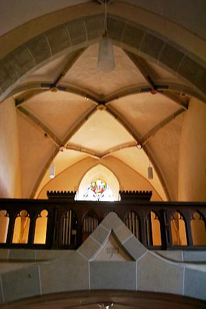 Die zur Straße gelegene Nordseite zeigt nun wieder das Bild der Zeit um 1500, da die bis zur Traufe reichenden Strebepfeiler in den Arkadenpfeilern erhalten geblieben waren, die Fenster wurden nach Vorbild der 1883 mit zweibahnigem Maßwerk versehenen Chorfenster rekonstruiert. Den Turm unterteilen Gesimse in drei unterschiedlich hohe Geschosse, als Abschluss ein achtseitiger, stark eingezogener Spitzhelm. Im nördlichen Winkel zwischen Turm und Schiff ein polygonales Treppentürmchen. Von der neugotischen, nach 1882 gefertigten Ausstattung sind der Hauptaltar, die Kanzel und ein Teil des Gestühls erhalten. 1921 entstand die Empore im Turmgeschoss und die figürlichen Wandmalereien von Nikolaus Krämer. Im Chor Grabmal des 1592 verstorbenen Hermann von Hersel. [2]