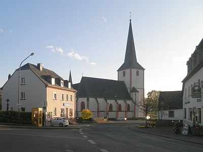 Spätgotischer Bau mit stattlichem Westturm. Grabstein von 1592. Turmmonstranz aus Sankt Vith (1567/68). Vesperbild um 1500. Mehrere Heiligenfiguren des 18. Jahrhundert. [1]