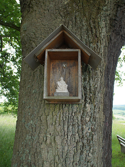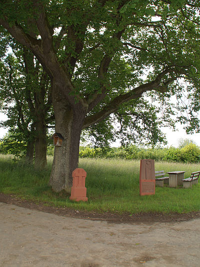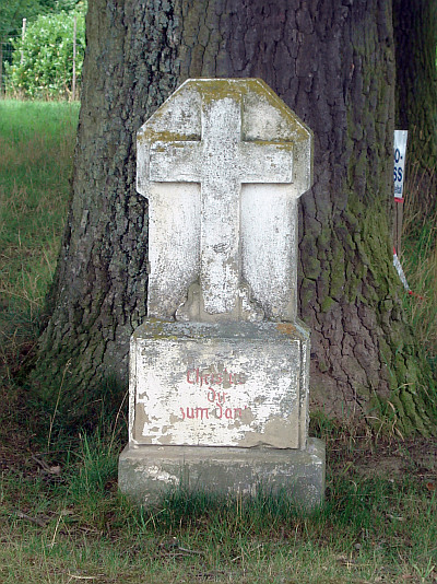 Auf Höhenpunkt 302,2 Meter über Normal-Null. Am Weg von Klüsserath, durch die Weinberge hoch, auf halbem Weg zur Hansenkapelle an einer Wegegabelung. [1]