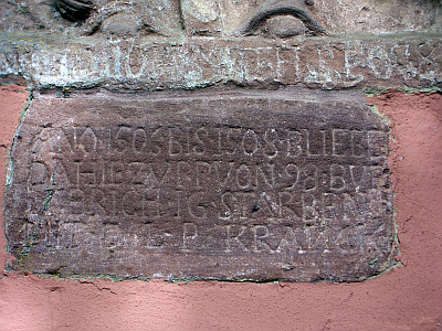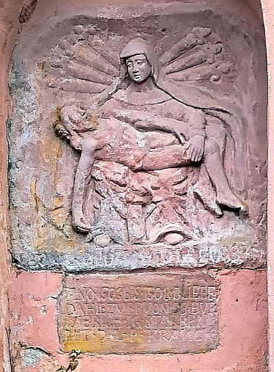 Das Bildnis trägt die Inschrift: ANO 1506 bis 1508 BLIEBEN DA HIE ZUR P:VON BUE[...]UIBRICH[...]STARBEN MIT DEM L. P: KRANK