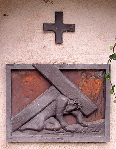 [1] Infotafel neben der Station I am Anfang des Kreuzweges.