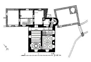 Sechseckiger Treppenturm des ehemaligen Pfarrhauses, 1536. [1]