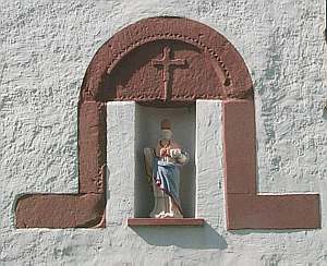 Erhalten ist das vermauerte romanische Portal mit in Stein gemeisseltem Vortragekreuz im Tympanon. Neuerdings in einer Niesche eingelassen ist eine Figur desClemens. Im Inneren dem heiligen Klemens geweihter Altar von 1715. [1]