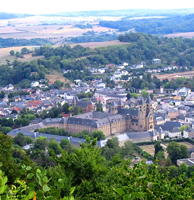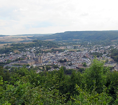 Aussichtspunkt an der Liboriuskapelle auf ca. 310m ü. NHN mit Blick auf Echternach, Basilika St. Willibrord und bis zum Echternacher See und röm. Villa am See. [1]