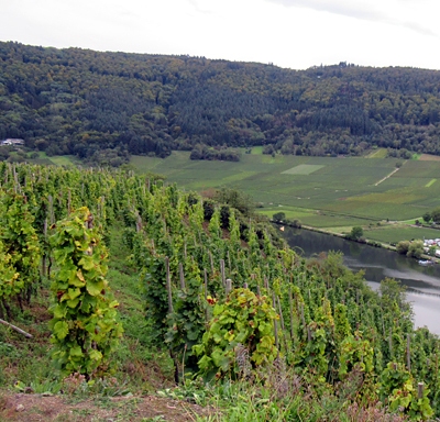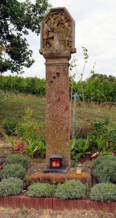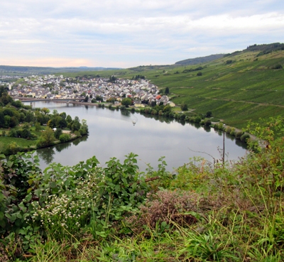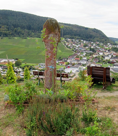 Aussichtspunkt beim Bildstock auf ca. 188m über NHN mit Blick auf Moselschleife bei Mehring. [1]