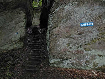 Der "Eulenhorst" erzählt davon, dass die Felshöhlungen Tieren als Zuflucht und Brutplatz dienen. [1]