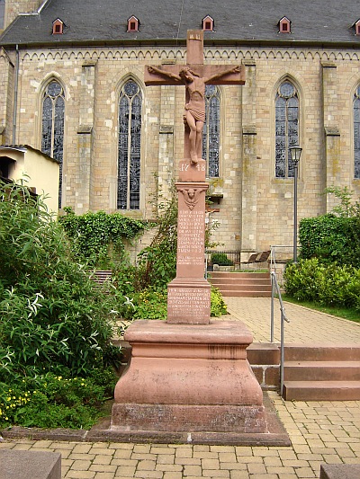 Das Kreuz wurde 2001 vom Haus Wehrstraße 2 vor den Aufgang zum Pfarrhaus versetzt. Ursprünglich stand es bis etwa 1976 vor dem Haus Oberstraße 1. [3]