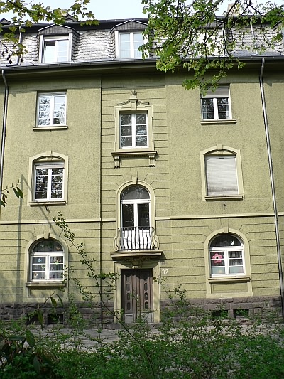 Durch seine neunachsige, steingegliederte Putzfassade gibt sich das Reihenhaus als ein typischer Vertreter des traditionsverbundenen und mit Barockizismen bereicherten Heimatstils der 1920er Jahre zu erkennen.