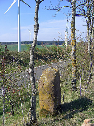 Der Stein, der dem Ort den Namen gab, steht etwa einen Kilometer, Richtung Balesfeld, von der Ansiedlung entfernt, gut sichtbar, auf der rechten Straßenböschung, ein nicht ganz runder, mit vierzig Zentimeter Durchmesser einen Meter aus der Erde ragender Meilenstein aus der Römerzeit, dem man sein Alter ansieht.