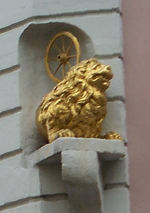 An der linken Ecke der Hauptfassade zur Brotstraße wurde als altes Hauszeichen von der ehem. Hofmauer eine Löwenskulptur mit einem Rad übernommen. Im Keller von Hosenstraße 1 korbbogiges Eingangsgewände aus rotem Sandstein, im Scheitel bezeichnet Meter M A S Meter 1742 (Modestus Manheim, Abbas S. Matthias).