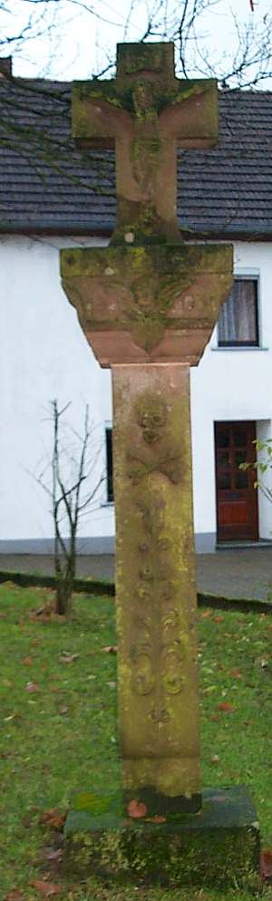 Hohes nachbarockes Schaftkreuz bei Brunnenstraße 15 von 1787. Am Schaftfuß der Errichtername JACOB TILSCH und die bei der letzten Renovierung zu 1737 verfälschte Jahreszahl. [1]