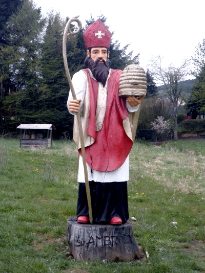 Die Verehrung des Heiligen als Schutzpatron der Imker erklärt sich aus einer Überlieferung, der zufolge sich in der Kindheit des Heiligen ein Bienenschwarm auf seinem Gesicht niedergelassen haben soll. Die Bienen seien in den Mund des Kindes gekrochen und hätten es mit Honig genährt. Dies wurde als Zeichen Gottes und ein Hinweis auf eine große Zukunft des Kindes gedeutet. Bienen werden wegen ihres seit jeher wertvollen Honigs und wegen des Wachses, des über Jahrhunderte einzigen Materials für die Kerzenherstellung, im Gesang des Exsultet geehrt und gelten sowohl als Christussymbol wie als Symbol der geweihten Jungfrauen und des Fleißes. In Österreich ist der 7. Dezember wegen des Gedenktags des Heiligen auch Tag des Honigs. [1]