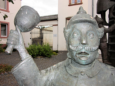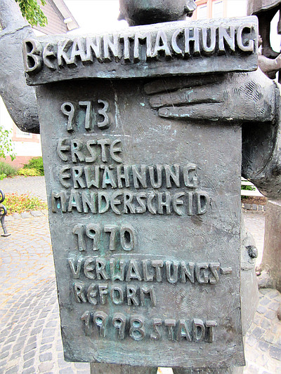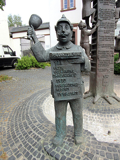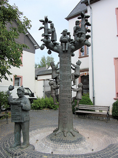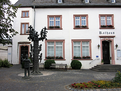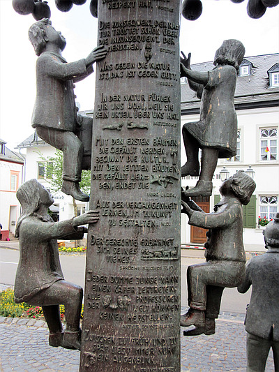 Auf dem Vorplatz der ehemaligen Verbandsgemeindeverwaltung (ab 2018 Ärztehaus) steht der Brunnen, vom Eifeler Künstler Johann Baptist Lenz geschaffen. Der Brunnen ist durch Vertiefungen im Vorplatz-Boden eingelassen, daneben in Form eines Baumes, der u.a. mit Lebensweisheiten, Sprüchen etc. versehen ist und den Kinder erklimmen. Davor eine Figur in Uniform und Pickelhaube, vermutlich ein kommunaler Polizeibeamter aus preußischer Zeit.