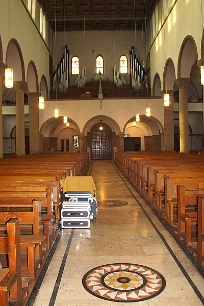 Neben seiner Arbeit als freier Architekt wirkte Marx auch bei der zeichnerischen Aufnahme und Inventarisierung von Denkmälern bei der Kommission zur Erhaltung Trierer Privatgebäude mit. Für die regionale Zeitschrift "Kur-Trier" verfaßte Marx außerdem Aufsätze, die sich mit lokalen denkmalpflegerischen Aspekten beschäftigten. Die Jahre 1915/16 erlebte Marx als Kriegsdienstleistender in Rußland. Nach seiner Rückkehr war er auch politisch aktiv. 1918 bis 1921 engagierte sich der frankophile und antipreußisch gesinnte Architekt in der Rheinland-Bewegung. Im Oktober 1923 beteiligte er sich am "Separatistenaufstand" in Koblenz. Man wünschte eine Loslösung des Rheinlands von Preußen und eine neugegründete rheinische Republik unter französischem Schutz. Als Mitglied der Christlichen Volkspartei kandidierte Marx für den preußischen Landtag. Seine Nähe zu den Separatisten war seinen Aufträgen nicht eben förderlich und als 1933 die Nazis die Macht an sich gerissen hatten, wurde er deshalb als "Vaterlandsverräter" betrachtet und bedroht: Die Fensterscheiben seines Wohnhauses waren eingeworfen worden. Daher emigrierte Marx 1933 nach Rom, wo sein Bruder Joseph im Vatikan lebte und wo auch Peter Marx ab 1944 Unterkunft fand. Die Zeit seines Rom-Aufenthaltes nutzte er zum Studium der christlichen Archäologie am "Pontificio Istituto di Archeologia Christiana". Nebenbei sammelte Marx in dieser Zeit Grundrißzeichnungen von christlichen Kirchenbauten aus den ersten sechs Jahrhunderten. Zu dieser Sammlung verfaßte er auch einen Kommentar und stellte eine Bibliographie zusammen. Das Manuskript, das er "Corpus Basilicarum Orbis Christiani" betitelte, wurde trotz aller Bemühungen nie veröffentlicht und ist mittlerweile von neuesten Forschungsergebnissen eingeholt worden. Im August 1947 kehrte Peter Marx endgültig wieder nach Trier in seine Heimatstadt zurück und arbeitete wieder als Architekt. Viele Kirchenbauten hatten Kriegsschäden erlitten und bedurften eines Wiederaufbaues oder Neubaues. Gerne wandte man sich nun wieder an den hierin erfahrenen Peter Marx. Da sein eigenes Haus den Krieg unbeschadet überstanden hatte, konnte er dort wieder Wohnung nehmen. Unter den von Marx entworfenen Kirchen findet sich auch sein letztes Objekt, die Kirche des nahe Trier gelegenen Ortes Igel, aus dem Jahre 1953/54. Am 21. Dezember 1958 starb der 87- Jährige in einem Trierer Krankenhaus nach kurzer Krankheit. Peter Marx wurde, wie seine Frau Laura, auf dem Trierer Hauptfriedhof bestattet. Ein für seine Entstehungszeit außergewöhnliches Grabmal, von Marx selbst entworfen, ziert das Doppelgrab des Ehepaares. Die schmiedeeiserne Bedachung der Stele aus Sandstein und die geschmiedeten Seitenteile lassen das Grabmal heute noch wie neu wirken. Auf dem Stein sind in einer Kreuzigungsszene neben dem Christus am Kreuz die Heiligen Laurentius (Märtyrer mit einem Rost als Martersymbol dargestellt und der Namenspatron der Laura Gusenburger) und Petrus (mit einem Kreuz und als Namenspatron Peter Marx) abgebildet. Auf der darunter liegenden Inschriftentafel finden sich die Symbole der vier Evangelisten, die die Namen einrahmen. Unterhalb des Laurentius sind ein Mensch als Symbol für Matthäus und ein Stier für Lukas herausgearbeitet, unterhalb des Petrus entdeckt man einen Löwen als Markussymbol und einen Adler als Hinweis auf den Evangelisten Johannes. Auch in seinem Grabmal zeigt sich die tiefe Frömmigkeit des Architekten und Baumeisters Peter Marx. Die ganze Familie Marx war dem katholischen Glauben eng verbunden, ergriffen doch vier Brüder des Peter Marx einen geistlichen Beruf. Peter Marx zählt zu den erfolgreichsten Kirchenbaumeistern seiner Zeit im Bereich des Bistums Trier. Mindestens 71 Kirchen und Kapellen (darunter sehr viele im Saarland) entstanden nach seiner Feder oder wurden seinen Entwürfen gemäß umgebaut oder erweitert. [2]