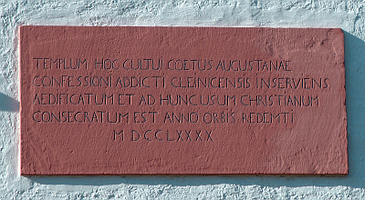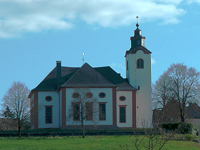 Frühklassizistischer Zentralbau, 1789–90, herzoglich zweibrückischer Baumeister Friedrich Gerhard Wahl, Turm im Kern frühromanisch. [1]