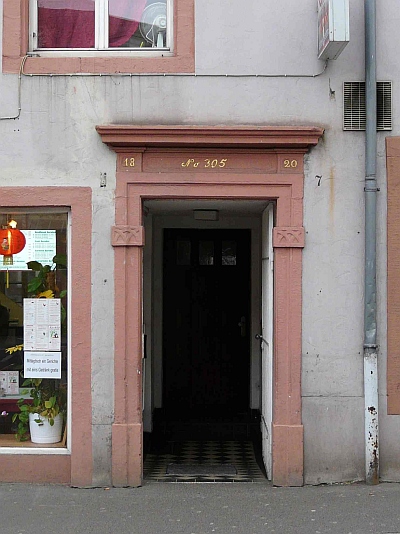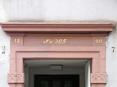Architektur- und Ausstattungsteile des 17.-20. Jahrhunderts an zwei mehrfach überformten Häusern. Im ersten Haus klassizistisches, rechteckiges Portalgewände mit Oberlicht und Horizontalverdachung. Kämpfer und Sturz unter dem Oberlicht ziert ein Kreuzbogenfries. Der gebälkartige Streifen unter der Verdachung weist das Baudatum und die Hausnummerierung auf 18 -No. 305- 20. Am anderen Haus im Erdgeschoss eine reich stuckierte Balkendecke des 17. Jahrhunderts (sogenannte Kölner Decke), eine spätbarocke, von Pilastern mit Rocaille-Kapitellen flankierte Ofennische und im Obergeschoß eine einfachere Ofennische (vermutlich frühes 19. Jahrhundert). [1]