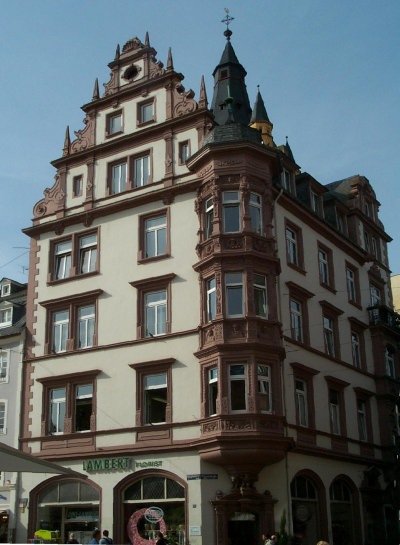Nach Entwurf der Würzburger Architektengemeinschaft Wieselsberger & Müller von 1898 durch den Bauunternehmer August Wolf errichtetes Miets- und Geschäftshaus der Kunstgärtnerei J. Lambert & Söhne. Das die Nachbarbebauung überragende, über zwei Kellergeschossen viergeschossige Eckhaus der deutschen Neurenaissance ist an der Einmündung der Fleischstraße in den Hauptmarkt von platzbildprägender Bedeutung.