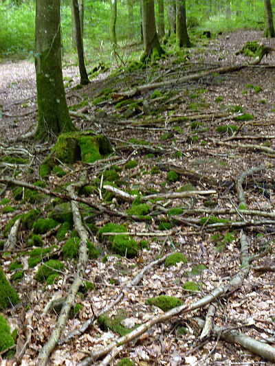 In seinem Buch "Ortskunde Trier-Mettendorf" hat Steinhausen den Verlauf der Langmauer für jeden einzelnen Ort beschrieben. "Bes. schön erhalten ist das Stück im Walddistrikt 'Kanert'", schreibt er auf Seite 369. Nach eigener Beobachtung gilt dieser Satz auch heute. Auf Wanderkarten ist im Bereich 'Kanert' die Langmauer zwar nicht eingezeichnet, wohl aber weiter südlich im Walde Erwen und im Haardtwald in Richtung Kimmlingen. Wenn man alle in den drei Wäldern erhaltenen Teile der Langmauer zusammen sieht, hat man auf einer Länge von etwa vier Kilometern so viele erhaltene Reste der Langmauer wie sonst nirgendwo; man muss nicht wie in Zemmer erst noch nach der Langmauer suchen. [2]