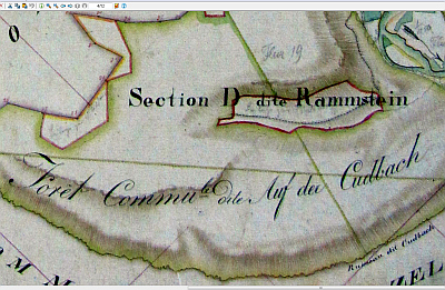 Nach dem "Plan Parcellaire de la Commune de Cordel" vom 28. Mai 1810 [Sammlung Richard Schaffner, Kordel, 2015] trennen die Marksteine hier den "Foret Communal dite Auf der Cudbach" [Gemeindewald genannt Auf der Cudbach] von der "Section D dite Rammstein" [Abteilung D genannt Rammstein]. [2]