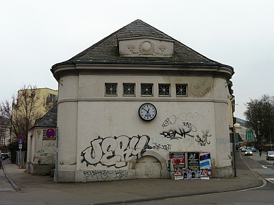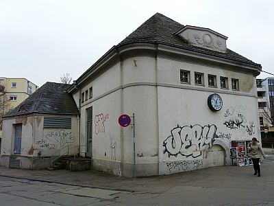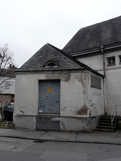 Zwischen den Einmündungen der Kutzbachstraße und Moselstraße gelegenes, beidseitig von zurückliegenden niedrigen Annexen flankiertes Transformatorenhaus, vermutlich noch vor Ausbruch des Ersten Weltkriegs erbaut. Der Putzbau bildet unterhalb des reich profilierten Traufgesimses eine Attika aus. Bemerkenswert ist die feinfühlige Abmilderung der Ecksituation durch eingezogene, abgerundete Kanten und durch die Abkantung des Walmdachs an der Platzfront. In der Achse des rundbogigen Eingangs befindet sich ein flach übergiebeltes Zwerchhaus mit (nachträglich zugesetztem) Oculus und klassizistischen Füllhörnern als Putzreliefs.