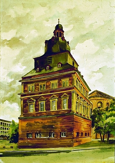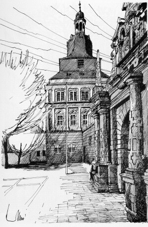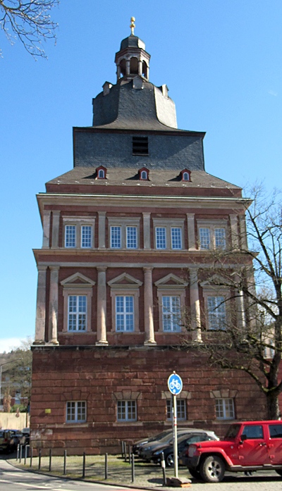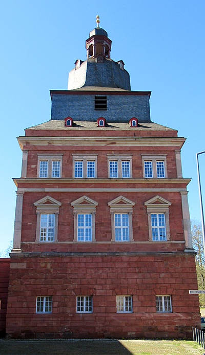 [...] vom renaissancezeitlichen Niederschloss erhalten: Außenbau des "Roten Turms" mit barocker Haube, 1647 durch den kurtrierischen Oberbaumeister Matthias Staudt begonnen [...]