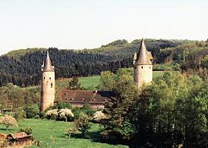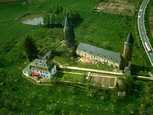 Ehemalige Wasserburg mit zwei Rundtürmen. Zwischen den heute verlandeten Gräben stehen die Reste der wieder bewohnten Kernburg und einer weitläufigen Vorburg. 1211 erstmalig erwähnt. Trierer Grenzburg gegen Luxemburg.