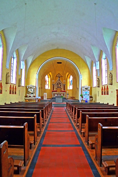 Die jetzige Pfarrkirche wurde 1927 erbaut. Ihre Patrone sind der heilige Petrus und der heilige Leonhard. Der schöne barocke Muttergottesaltar (linker Seitenaltar) stammt noch aus der alten Kirche, ebenso das im Altarraum hängende ausdrucksstarke Holzkreuz (um 1600). [1]