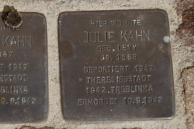 Seit 2011 erinnern vor der Markt-Apotheke und dem Nachbarhaus 24 Stolpersteine" an das Schicksal der einst in Freudenburg lebenden Familien von Gustav Kahn und Samuel Samuel-Weil, die während der NS Zeit verschleppt und ermordet