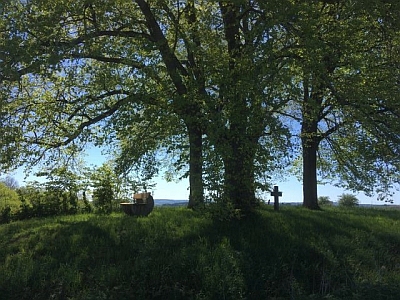 Dieses von vier Linden umstandene Kreuz war ein sogenanntes Fußfallkreuz.