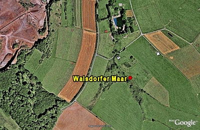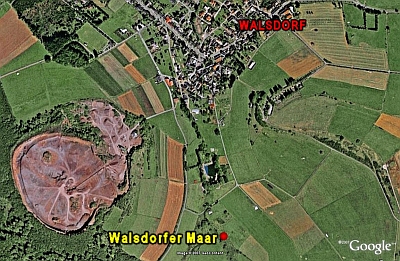 Südlich von Walsdorf in einem länglich-ovalen Kesseltal gelegen; Der 614 Meter hohe Goßberg und 2 Kilometer weiter der Arensberg (500 Meter) sind ebenfalls vulkanischen Ursprungs. Der Goßberg ist ein Schichtvulkan aus basaltischen Schlacken, Tuffen und Basaltlavaströmen aus dem Quartär. Der Arensberg ist ein tertiärer Basaltkegel mit Tuff ummantelt.
