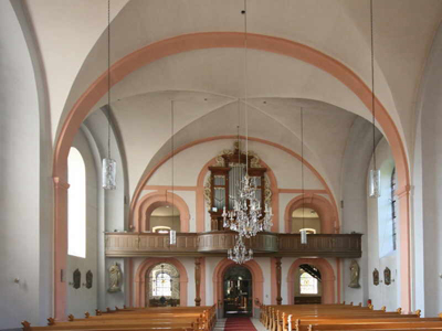 Die Empore an der Westwand der Kirche, die sich dem schlichten Barock der Kirche anpasst, birgt im barocken Prospekt die Orgel der Kirche: 1910 errichtet in der Orgelwerkstatt Turk in Klausen, 1970 erneuert, 15 klingende Register.