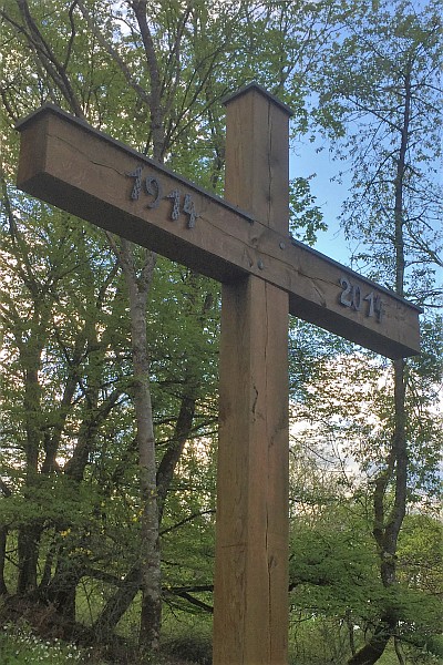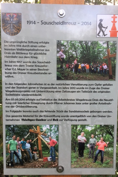 Es soll sich um ein fast drei Meter hohes Kreuz aus Eichenholz gehandelt haben. Laut Angaben eines Zeitzeugen war es mit "1914" datiert. Ein Dreiser Soldat hat es in der Hoffnung auf gesunde Heimkehr aufstellen lassen, bevor er in den Krieg zog. [1]