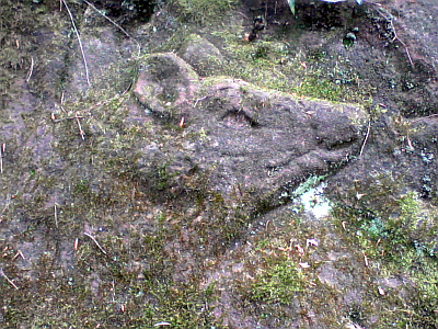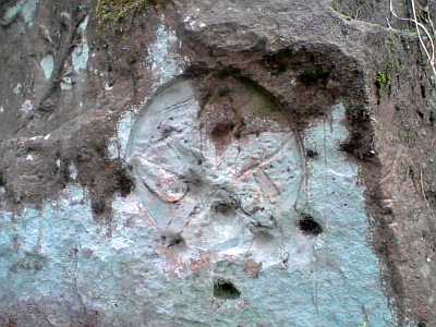 Mehrere Reliefs wurden im Eurener Wald im Laufe des 2. Weltkrieges von französischen Kriegsgefangenen (freiwillig?) angebracht. Als Einziges blieb das dargestellte Relief mit Schwein und Hirsch erhalten. Die anderen Reliefs sind von der Natur überdeckt bzw. nicht mehr auffindbar. Das sichtbare zerstörte Wappen soll damals ein Hakenkreuz dargestellt haben und wurde später abegeschlagen.