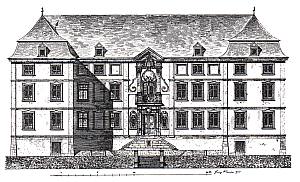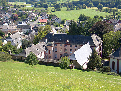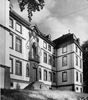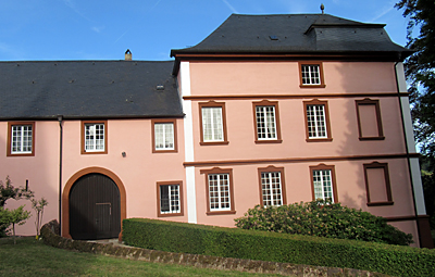 Der heutige Schloßbau soll der dritte an dieser Stelle sein. 1774 errichtet vom Abt Michael Hormann von Echternach (1751- 1775). Reste eines älteren Baues sind nicht vorhanden. Der Besitz war seit der französischen Revolution zerstreut, bis der Großherzogliche hessische Geheime Rat und Kanzler der Universität Gießen, Dr. Timotheus Balthasar Freiherr von Linde ihn 1840 wieder zusammenbrachte.