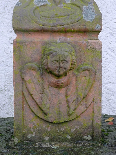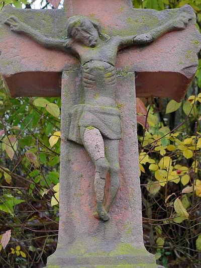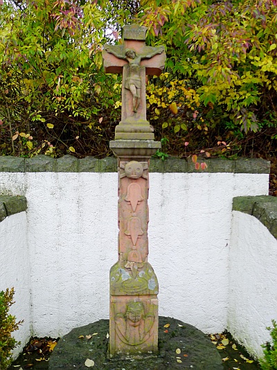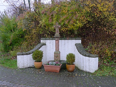 Spätbarockes Schaftkreuz in altem, kreisrundem Fundamentstein. Der Schaftfuss nicht mehr als Diamantquader gearbeitet, sondern mit Spielgelfeldern versehen, an der Vorderseite ein geflügelter Puttenkopf.