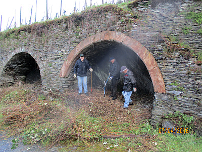Der rote Sandsteinbogen wird zur Zeit unter der Leitung von Gerhard Bretz freigelegt. [1]