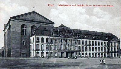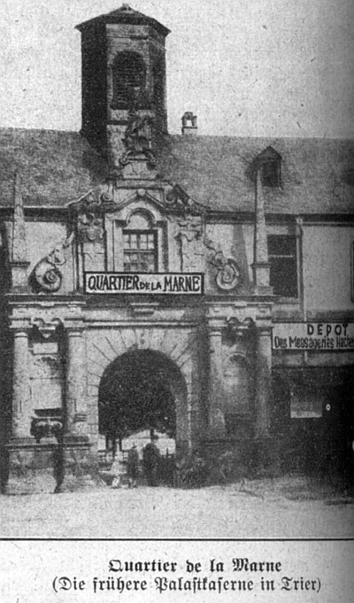 Als die protestantischen Preußen Trier eroberten, änderte sich hieran nichts. Auch sie verwendeten das Kurfürstliche Palais bis 1918 als Kaserne für ihre Truppen. Seit 1871 war in der genannten "Palastkaserne" das 7. Rheinische-Infanterie-Regiment Nr. 69 einquartiert. Nach dem Ende des Krieges wurde die Kaserne kurzzeitig von der US-Armee belegt, ihr folgten 1919 die Franzosen, die die Kaserne in "Quartier de la Marne", in Anlehnung an die Marneschlacht benamten, und blieben dort bis 1930. Des Weiteren war in der Zeit des Ersten Weltkriegs dort das Reservelazarett III untergebracht. [1]