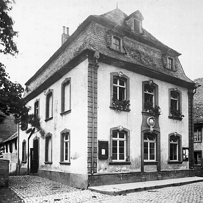 Der große zweigeschossige Bau mit Ecklisenen und Sockel aus wiederverwendeten römischen Kalksteinquadern wurde 1790/91 unter Amtmann Johann Wilhelm Stein an der Stelle eines älteren Gebäudes errichtet. Im Amtshaus hat 1512 Kaiser Maximilian auf der Durchreise Quartier genommen, 1795 ist es zum französischen Militärhospital umgewandelt worden. Die den Hof säumenden Nebengebäude und Schuppen mit einem Torbogen von 1709 wurden in den 60er-Jahren niedergelegt. [1]