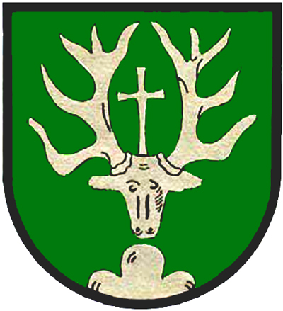 In Grün über silbernem Dreiberg ein silberner Hirschkopf im Visier mit silbernem Hochkreuz zwischen den Geweihstangen.