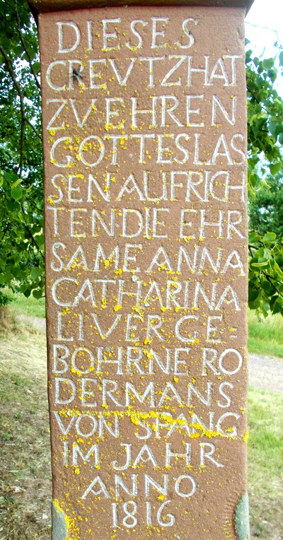 Am Fuß des Kirchberges steht ein schlankes Schaftkreuz, errichtet 1816 durch ANNA CATHARINA LIVER GEBOHRNE RODERMANNS (Inschrift). [1]