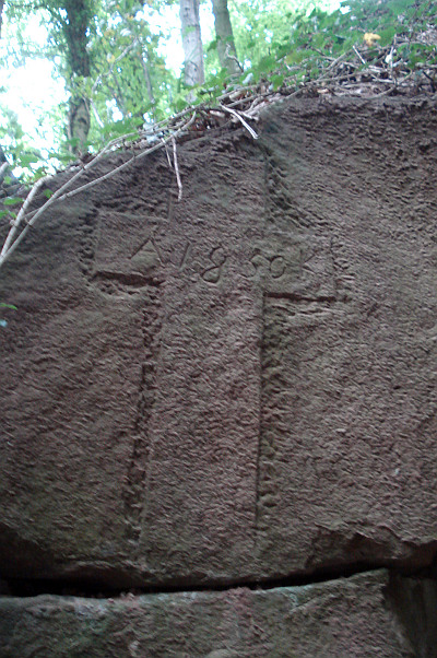 In Hosten erzählt man über diesen Gedenkstein die folgend Geschichte: Zwei Kinder aus Hosten wurden unterwegs am "Bierchensgraben (Weg von Hosten nach Wellkyll) von einem Wolkenbruch überrascht. Sie suchten Schutz im Graben unter einer Felsplatte. Die ungeheuerlichen Regenmassen ließen schnell das kleine Tälchen mit Wasser füllen und die Schutzsuchenden kamen in den Wassermassen um. Man erzählt, dass es Kinder aus Hosten waren und von einer Familie mit dem Hausnamen "Räles" abstammen. Nach einer anderen Erzählung kamen eine Frau mit ihrem Kind dort um. Es sollen keine Hostener Leute gewesen sein. Die eingehauenen Buchstaben sind wahrscheinlich ein Namensmonogramm. [1]